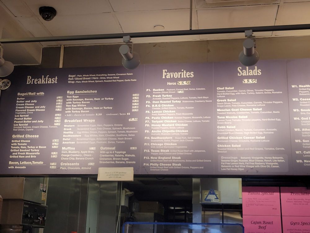 Introducing the menu at d Elici, a cozy sandwich shop in New York offering a range of breakfast and lunch options. From classic bagels with various toppings to flavorful omelettes with diverse fillings, this spot caters to a variety of tastes. Customers rave about the freshness of ingredients and the affordable prices. Standout items include the Reuben sandwich, Western omelette, and turkey with egg white on multigrain bread. The quick service, friendly staff, and 10% discount for online orders add to the charm of this local favorite. Whether you're in the mood for a quick bite or a leisurely meal, d Elici provides a satisfying dining experience in the bustling Financial District.